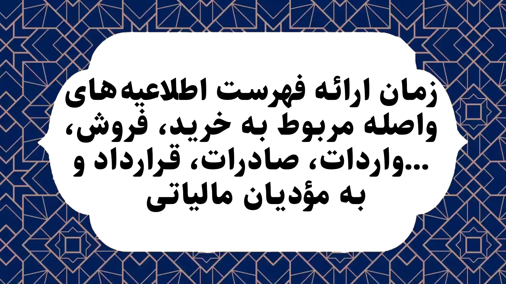 موضوع: زمان ارائه فهرست اطلاعیه‌های واصله مربوط به خرید، فروش، واردات، صادرات، قرارداد و به مؤدیان مالیاتی