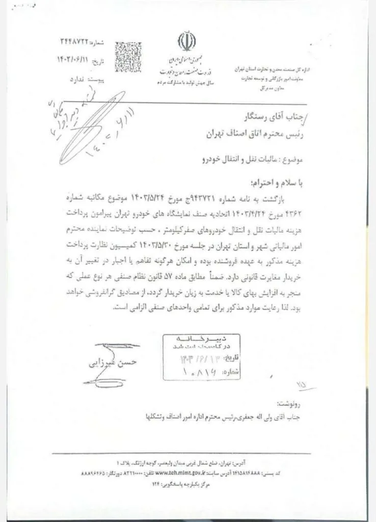 برای اینکه موضوع مالیات نقل و انتقال خودرو بیشتر روشن بشه، یه بخشنامه جدید به اتحادیههای صنفی تهران فرستاده شده که توش تاکید شده باید این مالیات قبل از انجام هر نوع خرید و فروشی پرداخت بشه و اصلاً بحث اختیاری نیست. طبق این بخشنامه، از نظر قانون ۵۷ نظام صنفی، هرکاری که باعث بشه قیمت یک کالا یا خدمت بالاتر بره و به ضرر خریدار تموم بشه، بهعنوان گرانفروشی شناخته میشه. پس خریدارهای خودرو باید حواسشون باشه که موقع خرید، هیچ هزینهای بابت مالیات نقل و انتقال پرداخت نکنن.