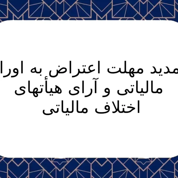 تمدید مهلت اعتراض به اوراق مالیاتی و آرای هیأتهای اختلاف مالیاتیTakmanتیر ۲۴, ۱۴۰۴ موضوع : تمدید مهلت اعتراض به اوراق مالیاتی و آرای هیأتهای اختلاف مالیاتی که انقضای مهلت آن در بازه ... ادامه مطلب