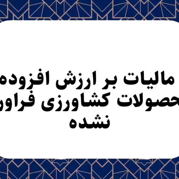 مالیات بر ارزش افزوده محصولات کشاورزی فراوری نشدهTakmanخرداد ۹, ۱۴۰۴موضوع:مالیات بر ارزش افزوده محصولات کشاورزی فرآوری نشده، گیاهان دارویی ، محصولات مرتعی، محصولات جنگل و …….. کلمات کلیدی: قانون ... ادامه مطلب
