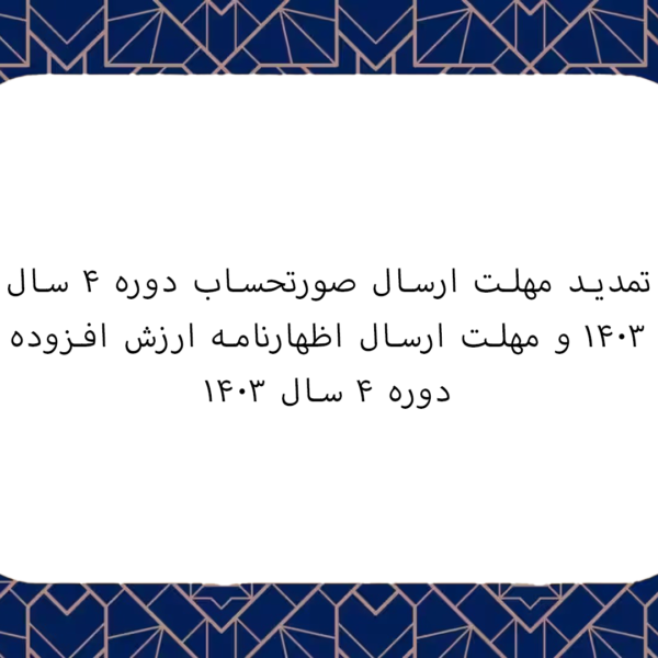 تمدید مهلت ارسال صورتحساب دوره ۴ سال ۱۴۰۳ و مهلت ارسال اظهارنامه ارزش افزوده دوره ۴ سال ۱۴۰۳Takmanفروردین ۲۵, ۱۴۰۴موضوع: تمدید مهلت ارسال صورتحساب دوره ۴ سال ۱۴۰۳ و مهلت ارسال اظهارنامه ارزش افزوده دوره ۴ سال ۱۴۰۳ کلمات ... ادامه مطلب