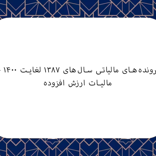 پروندههای مالیاتی سالهای ۱۳۸۷ لغایت ۱۴۰۰ – مالیات ارزش افزودهTakmanفروردین ۲۵, ۱۴۰۴کلمات کلیدی: پروندههای مالیاتی سالهای ۱۳۸۷ لغایت ۱۴۰۰ – مالیات ارزش افزوده با توجه به مفاد بند (ت) تبصره ۶ ... ادامه مطلب