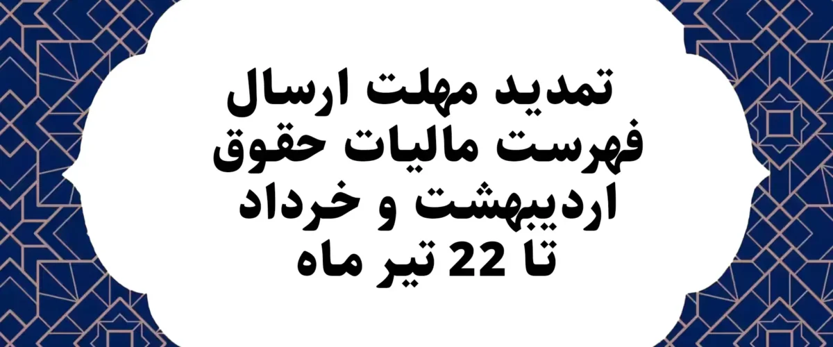 تمدید مهلت ارسال فهرست مالیات حقوق اردیبهشت و خرداد تا ۲۲ تیر ماهTakmanتیر ۶, ۱۴۰۴تمدید مهلت و بخشودگی جرایم به منظور تسهیل فرآیندهای مالیاتی و حمایت از مؤدیان از سوی سازمان امور مالیاتی کشور ... ادامه مطلب