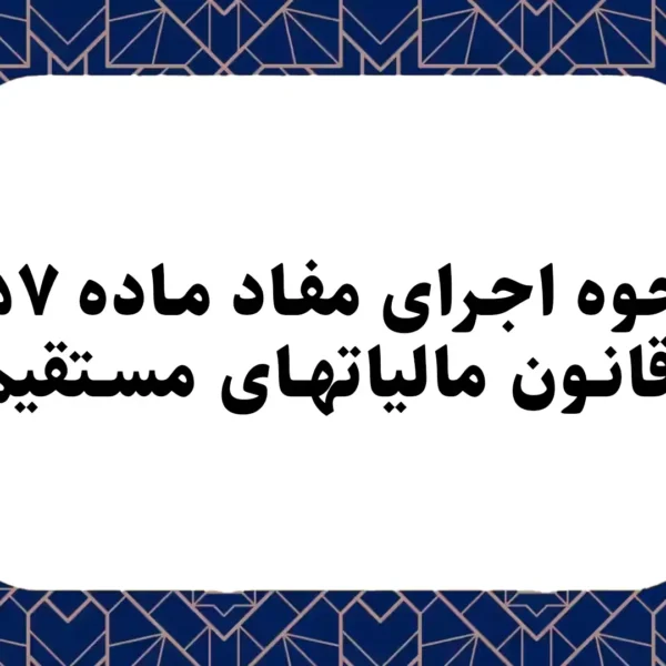نحوه اجرای مفاد ماده ۲۵۷ قانون مالیاتهای مستقیم Takmanخرداد ۹, ۱۴۰۴موضوع: نحوه اجرای مفاد ماده ۲۵۷ قانون مالیاتهای مستقیم کلمات کلیدی:ماده ۲۵۷ قانون مالیات های مستقیم عبارت زیر به عنوان ... ادامه مطلب